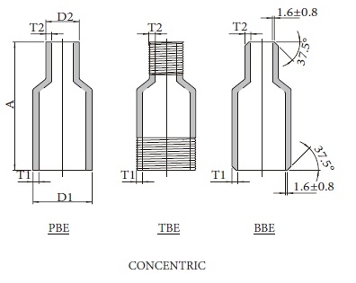 PBE: Ambos extremos planos, BBE: ambos extremos biselados, TBE: ambos extremos enroscados